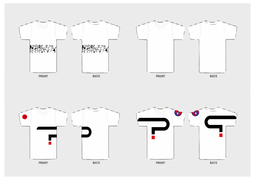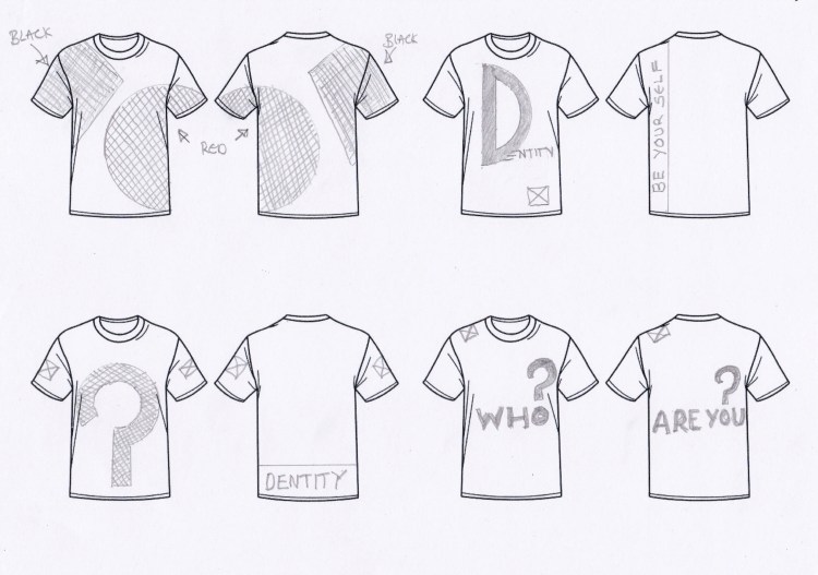 Some pencil sketches or thumbnails for the T shirt designs. The question mark is quite prominent I think this is a massive part of the brand identity and the question mark represents who are you?